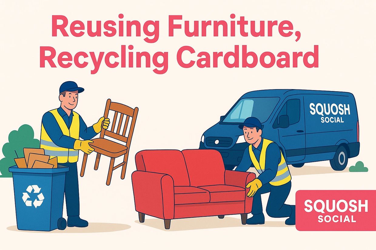 Squosh Social CIC is a community-focused social enterprise based in Greater Manchester. We exist to tackle a growing problem across high-rise and low-rise social housing: perfectly reusable items being thrown away, overflowing bin stores that affect entire communities, and missed recycling opportunities caused by contamination and excess waste.